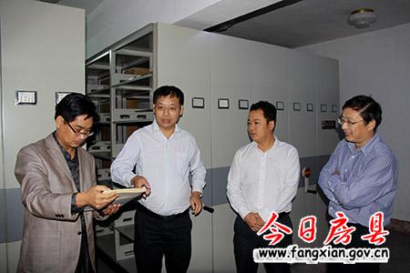 今日房县网讯 记者 吴宏强 通讯员 散钰泽 报道: 26日,省档案局管室处处长刘晓春、法规处副处长张杰一行来我县调研档案工作,市档案局局长芦汉国,县委常委、县委办主任张永平陪同调研。