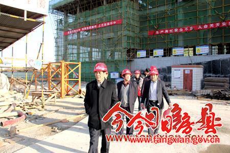 图为考核组现场察看检察院施工工地