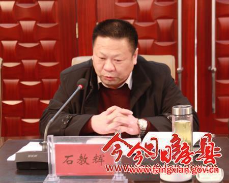 图为副县长石教辉向市考核组汇报安全生产工作情况