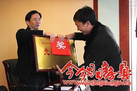 县委副书记张慧彬等为2013年先进单位和个人颁发奖牌