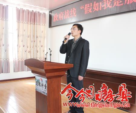 今日房县网讯 记者毛俊杰 通讯员冯兴言 报道:4月29日下午,政府战线开展“假如我是服务对象”演讲比赛,来自政府战线的各单位、不同工作岗位的10名选手参加了演讲。