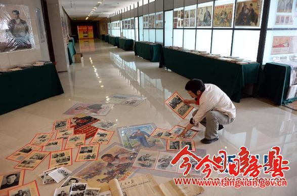 5月9日,冯路在郑州市郑东新区的一个展厅里整理焦裕禄文献资料。冯路是郑州一所大学的老师,他业余“痴迷”收藏已有20多年,有关焦裕禄的藏品他共收藏了2000余件。今年是焦裕禄逝世50周年,冯路在郑州举办展览,弘扬焦裕禄精神,展品包括书籍、新闻报道、老照片、画报、海报等。新华社记者 赵鹏 摄