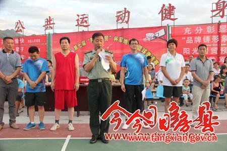 今日房县网讯 记者毛俊杰 通讯员李丽 报道:为庆祝第87个“八一”建军节的到来,7月19日,我县在市民公共运动健身场举行第七届“阳光国贸杯”军地甲级篮球比赛。市委常委、统战部长彭承志,市委常委、政法委书记师永学,县领导柯大成、蔡贤忠、王家波、陈渊、张永平、杜启学、董诠闻或观看或参加了比赛。县人武部政委易永年在开幕式上致辞。