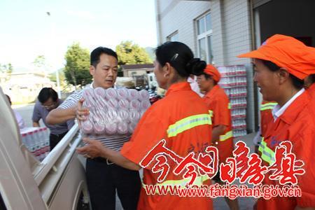 王家波、张永平代表县委、县政府向高温酷暑中仍辛勤工作的一线职工表示诚挚的谢意。同时要求,县城管、环卫等需在室外作业的相关部门要主动升级设施配备,做好职工防暑降温工作;一线作业人员要合理安排作业时间,尽量避开高温时段,防止中暑等不良情况发生;新闻媒体要积极宣传报道坚守在高温一线的职工,并呼吁广大市民自觉提升素质,不乱丢弃垃圾、杂物,尽量减少环卫工人作业量。
