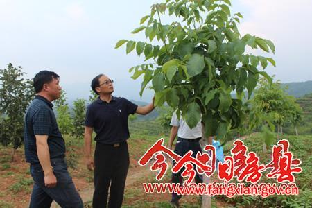 在军店镇、化龙堰镇核桃基地,蔡贤忠实地查看核桃产业基地管理模式、发展情况后指出,要进一步发挥好核桃基地示范和带动作用,要整合涉农资金完善相关基础设施,进一步扩大种植规模,带动周边群众积极参与,从而助农增收致富。