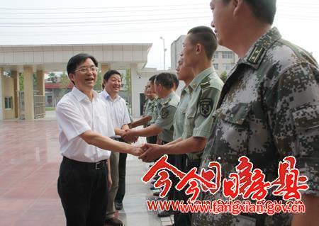 图为县领导张慧彬、王启云在县人武部同官兵一一握手