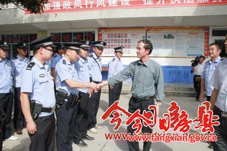 县委书记柯大成与城关派出所民警亲切交谈