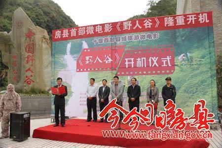 今日房县网讯 记者陈绍杰报道: 29日,十堰首部县域旅游微电影《野人谷》在我县野人谷风景区正式开拍。县长蔡贤忠,县委常委、纪委书记姚天国及剧组演职人员等出席开机仪式。《野人谷》讲述了野人谷镇的一位村长想建个图书馆,可惜没有资金,为了解决资金难题,他利用本村自然资源和野人传说发展旅游,游客慕名而来没有见到真正的“野人”,却被野人谷镇如画的自然景观,人与自然和谐相处的安逸氛围深深吸引,野人谷镇由此变成旅游热点。