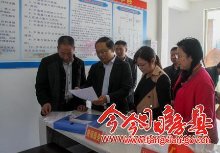 图为蔡贤忠一行在中坝乡龙驹山村便民服务中心查看精准扶贫建档立卡工作