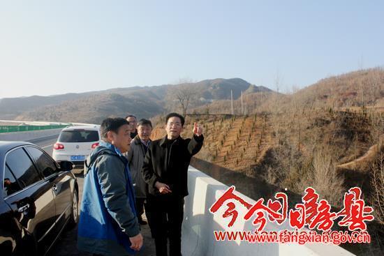 县委副书记张慧彬(右一)在谷竹高速察看沿线山体造林绿化情况