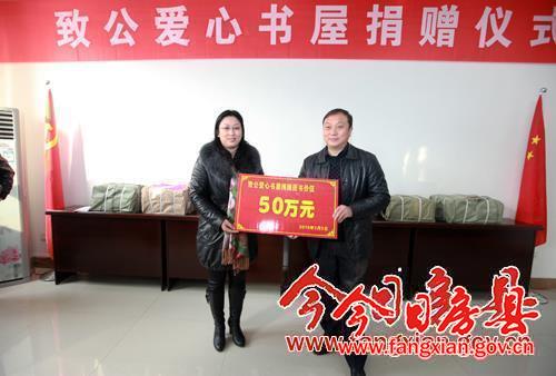 高明哲代表县委、政府对致公党爱心人士捐赠图书表示感谢,希望县教育部门要重视"爱心书屋"的建设和管理,使这些新的读物在学生中间生根、开花、结果。