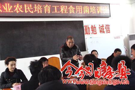 今日房县网讯 记者高书文 报道:27日,由县农业局、科技局、科协和农业广播电视学校举办的新型职业农民培育工程食用菌培训班举行开班仪式,县政协副主席、科技局局长李志权出席开班仪式,全县60余名食用菌种植大户参加了培训。