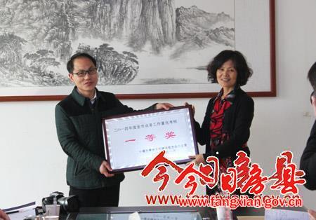 会上,我县荣获2014年度全市业务工作量化考核一等奖。