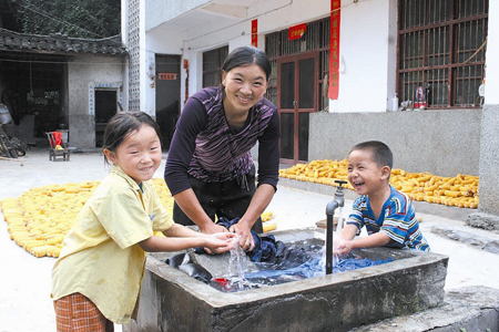 说起以往的断头渠,邵自银感慨不已。上世纪九十年代,几亩薄田是村民的命根子,可是由于镇上财力有限,渠道年久失修蓄水难,农田灌溉成了一大难题。每到收获季节,古桥村村民都得提前大半个月蓄水,甚至组织壮小伙去上游“守水赶水”。十几年来,为跟邻村抢水,发生了很多打架斗殴事件,村里每年花费上万元为赶水人付工钱。2005年,新一届省发改委帮扶工作队见此情景,下决心解决这一难题。经过一年多的努力,一座可容水15万立方米的水库建设完工,长达10公里的水泥灌溉渠修建一新,古桥、况营、谢湾等6个村上万亩农田灌溉问题得以解决。