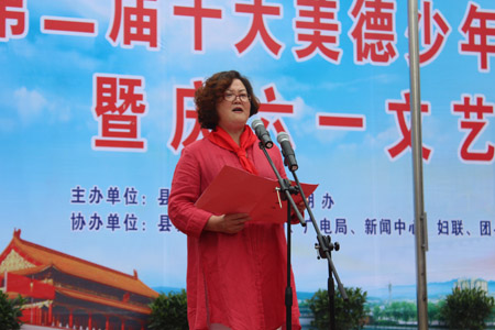 县委副书记张慧彬在致辞中代表县委、县政府对受表彰的美德少年表示热烈的祝贺,并向全县少年儿童致以节日的祝福!