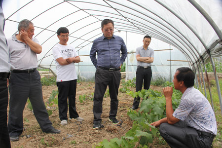 胡枫(左二)在白鹤镇调研葡萄种植情况