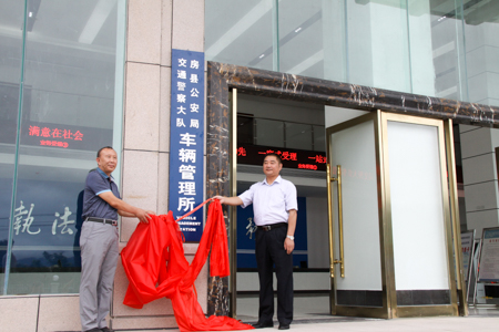 今日房县网讯 记者 吴宏强 通讯员 刘圣强 许世鹏 报道: 27日,县公安局交警大队车辆管理所举行搬迁揭牌仪式,县车管所由原来所在的县交警大队搬迁至东城工业园旁的房县驾考中心。副县长、公安局长柯正洪,县政协副主席周建国出席揭牌仪式。