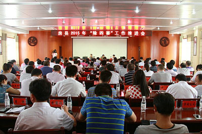 今日房县网讯 通讯员 邓发基报道:8月31日,房县人民政府在县疾控中心召开2015年“除四害”工作推进会,县直各部门和城关、红塔、白鹤镇主要负责人及相关专业人员等近百人与会。县政府党组成员袁堂珍就城区“除四害”专项整治活动作动员讲话。