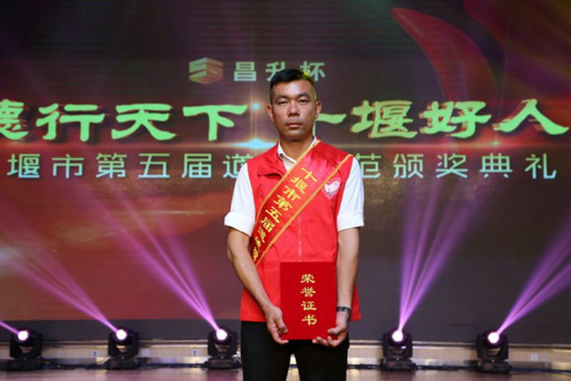 今日房县网讯 通讯员任志勇 报道: 德行天下,十堰好人。9月29日,十堰市第五届道德模范颁奖典礼在郧阳师专隆重举行。房县门古寺镇东河村村民、房县大爱义工队队长赵伟获得助人为乐模范提名奖。