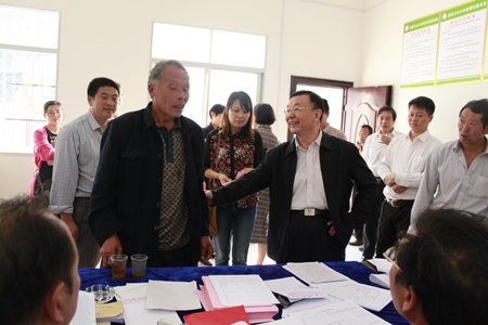王家波对我县贯彻落实上级关于全面深化农村改革重大部署工作进展情况进行了汇报。,我县在农业农村改革重点工作中加快构建新型农业经营体系,赋予农民更多的财产权利,全力推进农村金融体系创新,深化土地管理制度改革,深化水利管理体制机制改革,深化集体林权制度改革,深化扶贫机制改革,拓宽供销系统为民服务领域。目前新型农业经营体系构建、农村产权制度改革、农村土地承包经营权确权登记颁证工作和落实最严格水资源管理制度工作扎实推进、成效明显。