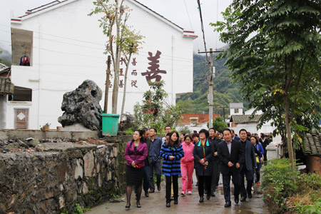 县委常委、宣传部长徐锦凤在竹溪县委常委、宣传部长彭艳的陪同下参观中峰镇同庆沟片区农村精神文明建设