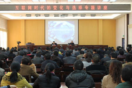 王开学围绕互联网的背景和发展趋势等内容,向参加讲座的人员讲授了“互联网+”的有关知识、价值及发展前景等,并结合房县实际,提出在互联网大背景下如何营造交流平台、构建服务体系等方面的意见,为我县政企适应、运用互联网发展模式提供了宝贵经验建议。