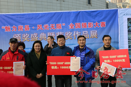 “魅力房县 风光无限”全国摄影大赛自2014年8月启动,2015年11月截稿,得到北京、上海、重庆、武汉、宜昌等省内外数百名摄影爱好者热情参与,共收到反映房县自然风光、地理地貌、风土人情、民风民俗等方面的5500余副摄影作品。经过专家组评审,房县电视台朱爱东拍摄的《觉醒的青峰古河床》荣获一等奖,房县文体局张华田拍摄的《披着朝霞起航》、吕磊拍摄的《圣殿之夜》、县疾控中心陈吉华拍摄的《龙腾盛世》荣获二等奖,《山乡唢呐声》、《田园曲》、《早市》、《蜗居》、《晚霞迎山城》、《传统手工作坊红薯粉丝》六副作品荣获三等奖。
