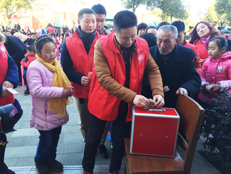戢勇是广东佛山南海名赫石墨制品有限公司总经理,为本次活动专程从广东赶回,活动中为大爱义工联合会捐款5000元。“我是房县西关人,虽然身处他乡,但也时刻关注家乡,希望能为父老乡亲做点力所能及的事。需要帮助的人还有很多,希望更多他乡创业成功的房县人士能够关注、帮助和关怀这些父老乡亲。”戢勇代表赞助企业致辞时说。