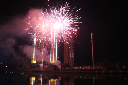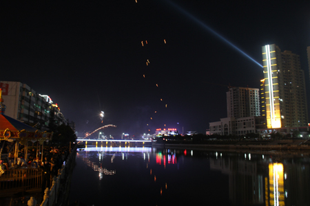 今日房县网讯 记者 赵爱平 王玮 报道:22日是正月十五,我县在热闹喜庆的元宵之夜,上演了盛大的庆新春烟花燃放活动,晚上8点,焰火准时将夜空点亮,璀璨缤纷的烟花绽放在西河广场的上空,引来数万市民前来观看。