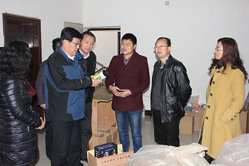 图为王耀辉一行在湖北爱拉屋电商公司调研