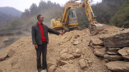 一大早,我和同事驱车30余公里来到村里,又步行去新房选址的地方,走了不到10分钟,就听到轰鸣的机械声,同去的村干部告诉我,那是老陈请的挖机,在清除场地上的碎石和土方。
