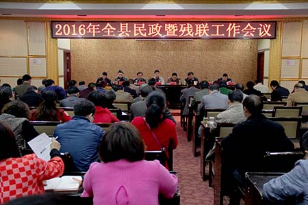 姚峰充分肯定了2015年全县民政、残联工作所取得的成绩。他指出,民政残联工作服务民生、连接民心,关系社会和谐稳定和人民群众的全面发展。认真谋划“十三五”时期民政残联事业发展,要以提升“人民群众获得感”为主线,对照各项目标任务,做到转变思维、更新理念、科学定位,全力做好精准扶贫攻坚、民生服务保障、社会治理创新等工作;要从大局出发,认真谋划,坚持改革创新,着力完善基本民生保障机制,围绕“社会保障、社会服务”两大体系,抓好民政残疾事业发展,引导更多的社会力量参与其中;要强化精准发力,实施好全县残疾人精准扶贫、精准脱贫工作,针对不同困难群体对症下药,坚决打好残疾人脱贫攻坚战,确保残疾人与全县人民同步迈入小康社会,实现民政和残疾人事业新的跨越。