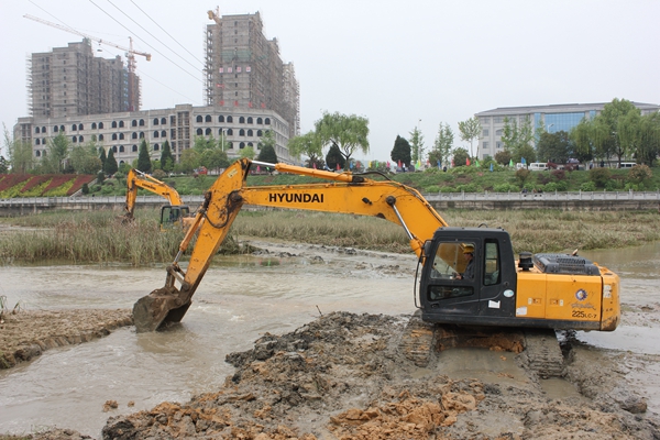 挖掘机正在清理河道淤沙