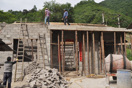 扶贫搬迁户李金平的新房已进入最后的上梁施工阶段
