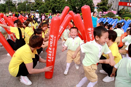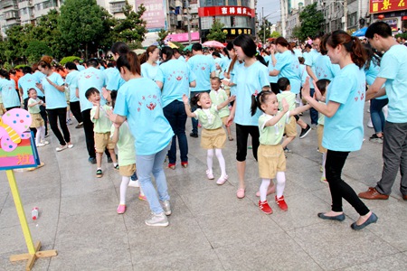 当天的活动在幼儿老师《创造奇迹》舞蹈中开始,接下来两个多小时里,全部为亲子互动表演。亲子操《海宝来了》《开心向前飞》,展示了幼儿园的活动因为有家长的参与变得更加精彩和生动。《七彩环保时装秀》表演时装都是由旧包装纸制作而成,表现了家长和孩子们的无限创意,尽情绽放出美丽、时尚、环保和温馨。用红凳子及用彩色充气棒作为道具的大型团体器械操、互动游戏,分别由全园幼儿及其家长参与完成,数百名孩子和家长统一着装,表演场面十分壮观,一时间美丽的西河之滨成了欢乐的海洋。大型互动游戏培养了孩子们的合作意识和团队精神,孩子们个个神采飞扬 ,家长们个个笑逐颜开。