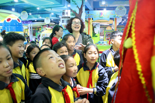 孩子们在爱心妈妈的陪伴下在房县儿童城内游玩