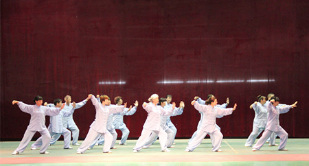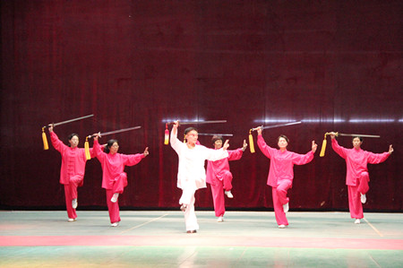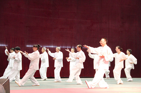 随后,与会领导、嘉宾及协会会员一起欣赏了精彩的庆祝演出。武当太极拳二十八式、武当三丰太极剑六十四式、武当太极拳十三式、武当伏虎拳、武当太乙五行拳、武当太乙玄门剑等节目令观众大饱眼福,其中武当道家功夫馆馆长陈师宇道长的武当两亿拳表演更是令人赞不绝口。