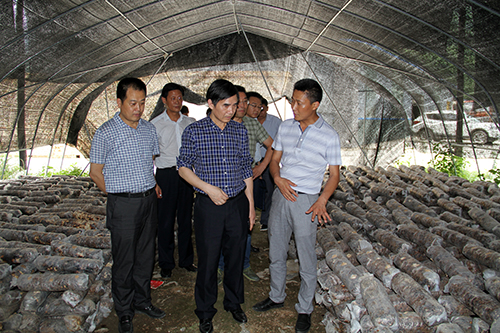 在土城镇龙坪村察看食用菌产业发展情况