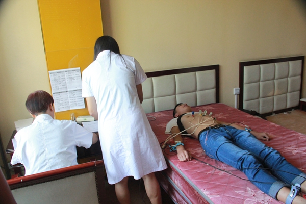 图为应征青年正在进行心电图检查