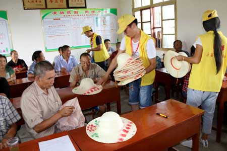 当日上午,37户贫困户与荷花园观光生态农业发展有限公司签订了土地耕种合同,该公司负责人程钰介绍说,公司将为这些贫困户统一免费供种、统一技术服务、统一市场价收购,保证农民有地种,更有钱赚。二组村民陈家全,六口人三个是残疾,他认领了5亩土地。陈家全说,他在政府的扶持下,养了500只鸡,种了5亩魔芋,再有这5亩地发展些经济作物,明年脱贫是没有问题了。据悉,活动当日,爱心驿站的志愿者们还现场为群众分发了草帽、水杯等物品。