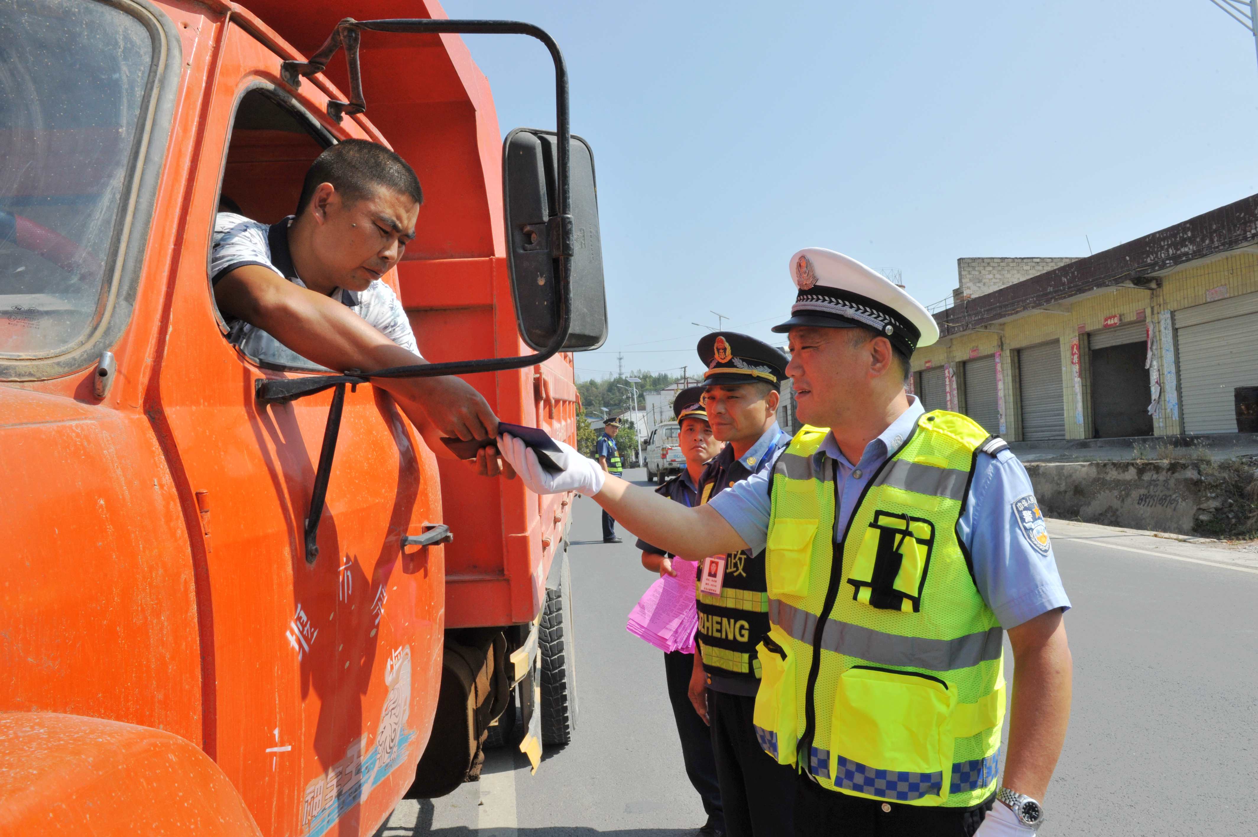 长期以来,公路货车超限超载行为一直是道路交通的“头号杀手”, 超载超限已成为严重影响社会和人民生命财产安全的一个突出问题,为进一步加大对违法超限超载行为的打击力度,切实贯彻国家、省市交通、公安部门近期颁发的系列相关文件精神,县路政、交警、运政组成联合执法专班,重点整治货车车货总重超过规定限值、货车载物超过长、宽、高规定限值、“双排”车辆运输车违规上路行驶以及货车闯卡、拒检、借故堵塞车道、损坏相关设施设备等违法行为。在联合执法现场,交警部门负责指挥引导车辆接受检验,公路管理机构负责实施称重,对经检测确认违法超限超载的车辆,由公路管理机构监督消除违法行为;同时依据管理机构开具的称重和卸载单,进行罚款、计分。