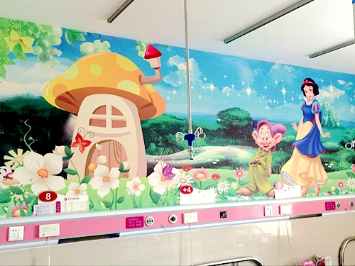 走进县保健院儿科,迎面的墙上喷绘着白雪公主、米奇、熊大熊二等儿童喜欢的卡通人物,艳丽的色彩、可爱的造型,使病房充满了童趣,为患儿和家长营造出愉快舒畅的环境。据了解,儿童由于自身的年龄因素,对事物的认知有限,一旦被送入医院,产生恐慌和不安的情绪是必然的,一个健康、愉悦、舒适的就医环境,对患儿的治疗和康复十分有帮助。为此,县保健院对儿科进行美化改建,有效减轻了儿童就医时的恐惧心理,得到了群众的一致好评。