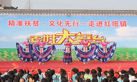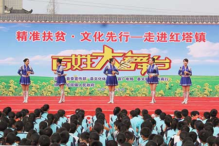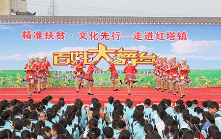 “精准扶贫 文化先行”《百姓大舞台》活动,在舞蹈《欢聚一堂》明快的舞姿中拉开了帷幕。随后,广场舞《跳到北京》、音乐快板《精准扶贫赞》、国标舞《舞动校园》、豫剧选唱《谁说女子不如男》、情景剧《土秀才开洋荤》等节目轮番精彩上演。