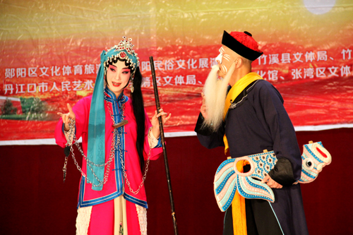 11月1日下午,由湖北省京剧院带来的折子戏《起解》、《乌盆记》和《泗水城》在县影剧院上演。《乌盆记》中,余派坤角老生的唱腔跌宕回环;《泗水城》里,刀马旦的身段娴熟精到……“有板眼”的房县观众被“有板有眼”的京剧折服了,叫好声此起彼伏。有观众感叹:“这才叫戏呀!” (高书文 龚成龙 摄)
