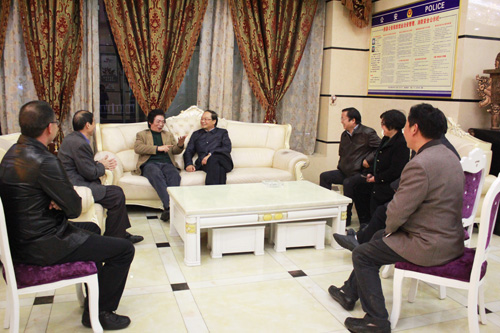 县委书记、县人大常委会主任蔡贤忠等县领导看望采风团,并与陈迪和、刘书平交流县级文化发展等内容