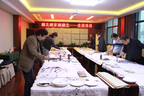 本次创作团由省国画院院长、书记、山水画家陈迪和带队,共有画家李宁、刘书平、安忠、戴启顺、胡长森、胡学武、倪利华等8人组成。画家们前往野人谷、岩屋沟、野人谷生态养生基地等地采风,用画笔描绘房县的好山、好水、好人文。创作团画家们还与县文联、美协及本地书画爱好者进行了交流。据介绍,“湖北画家画湖北”活动由省文联主办、湖北国画院承办。画家团将走遍全省106个县市采风和创作。自2013年启动以来,该活动已走进十余个县市。