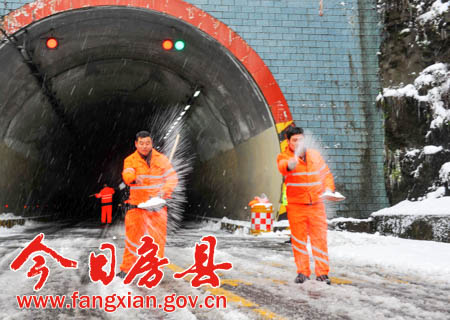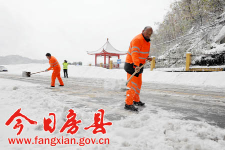 今日房县网讯 通讯员 王东 报道: 23日凌晨开始,我县出现大面积降雪,部分路段积雪达厚度超过20厘米,县公路局以雪为令,立即开展公路除雪保畅工作。