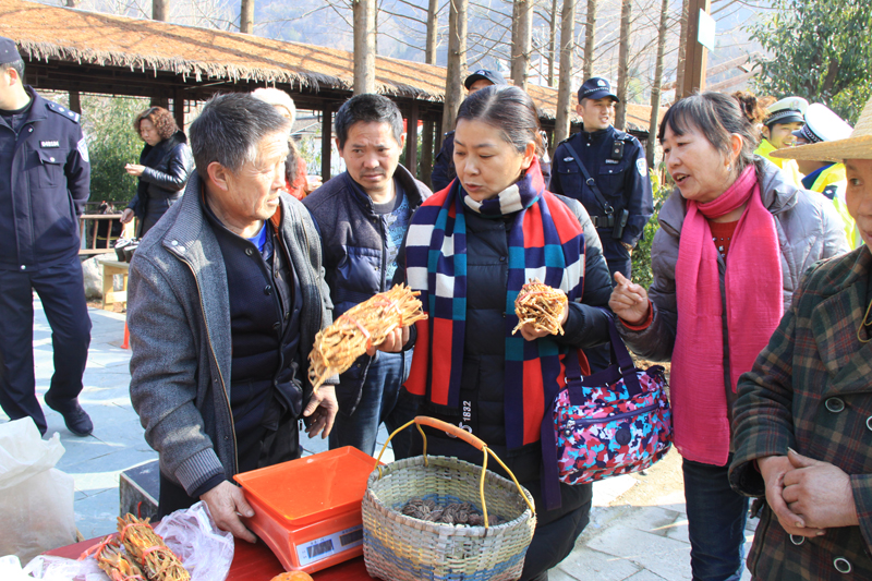 生态年货节最大受益者当属当地群众,他们将家中多余的腌菜、干菜等农产品卖给游客,换成现钱,用来购买其它生活用品。杜川村三组贫困户王天清往返回家三次将家中放置半年之久的干笋销售一空,他高兴地对记者说:“要不是有这个活动,我这只有自己慢慢吃了。”