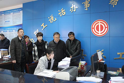 在县总工会职工服务中心查看困难职工数据库的管理使用情况