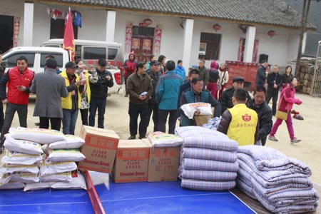 1月15日,由县委办牵头,房县爱心驿站志愿者协会、房县登山户外运动协会、房县金地建材共同参与的“善行房县、暖冬行动”走进指北村,为该村最需要帮助的25户贫困户送去粮、油、棉被、棉衣等价值近万元的物资,让他们温暖过冬。房县登山户外运动协会还与农户对接,组织会员们上门订购年猪、土鸡等,当日即帮当地农户销年猪4头、土鸡30只。(高书文 摄)